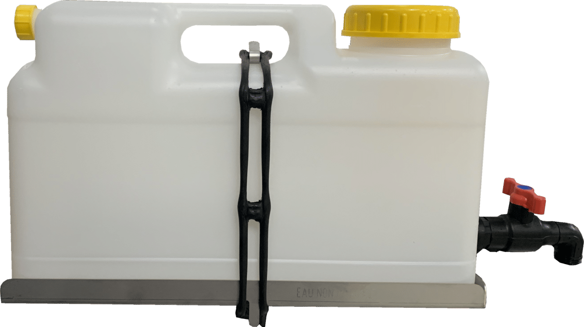 Une fontaine murale est idéale pour installer un point d’eau dans son véhicule. Fourni avec son robinet, la réserve d’eau peut être installer directement sur une porte de votre véhicule grâce au support de fixation fourni (en option sur certains modèles). L’installation d’un évier dans votre véhicule est également possible.